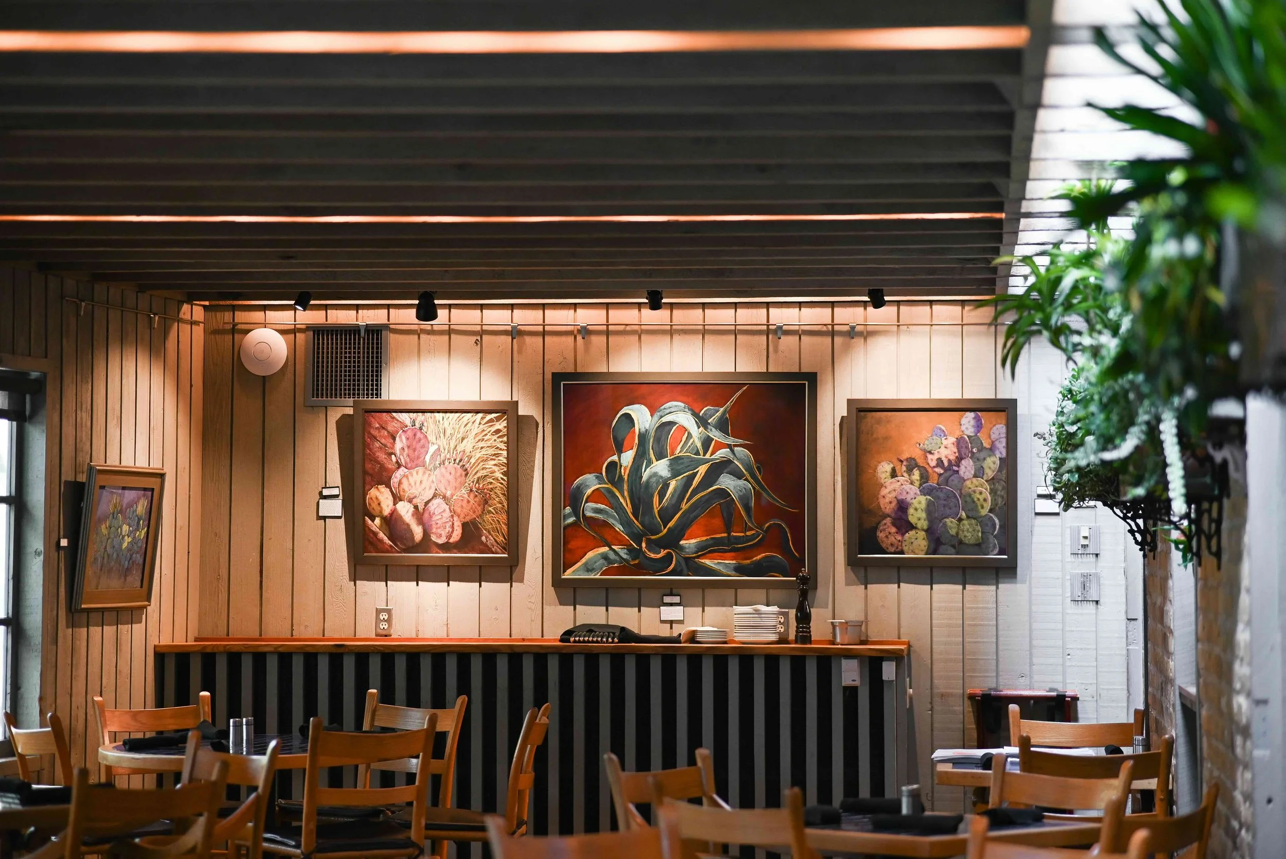 We believe your dining experience should be about more than just food and people. Since opening in 1977, we have featured the work of a different artist every 6-8 weeks and done our best to support local artisans and photographers. We believe that supporting the arts is supporting the quality of life in our community. All works of art are available for purchase.